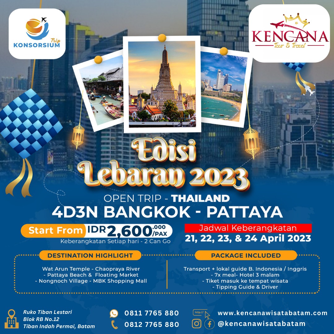 - Sampai Singapore akan dijemput oleh driver kami, drop ke pelabuhan untuk menyeberang kembali ke Batam. 4D3N Bangkok-Pattaya
